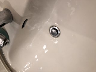 メラミンスポンジに水をつけてサササとこするだけで水垢はなくなりピッカピカに!