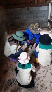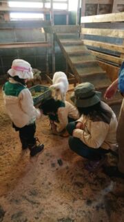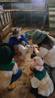 カノさんも加わって、仔山羊・子羊を掃除して‥