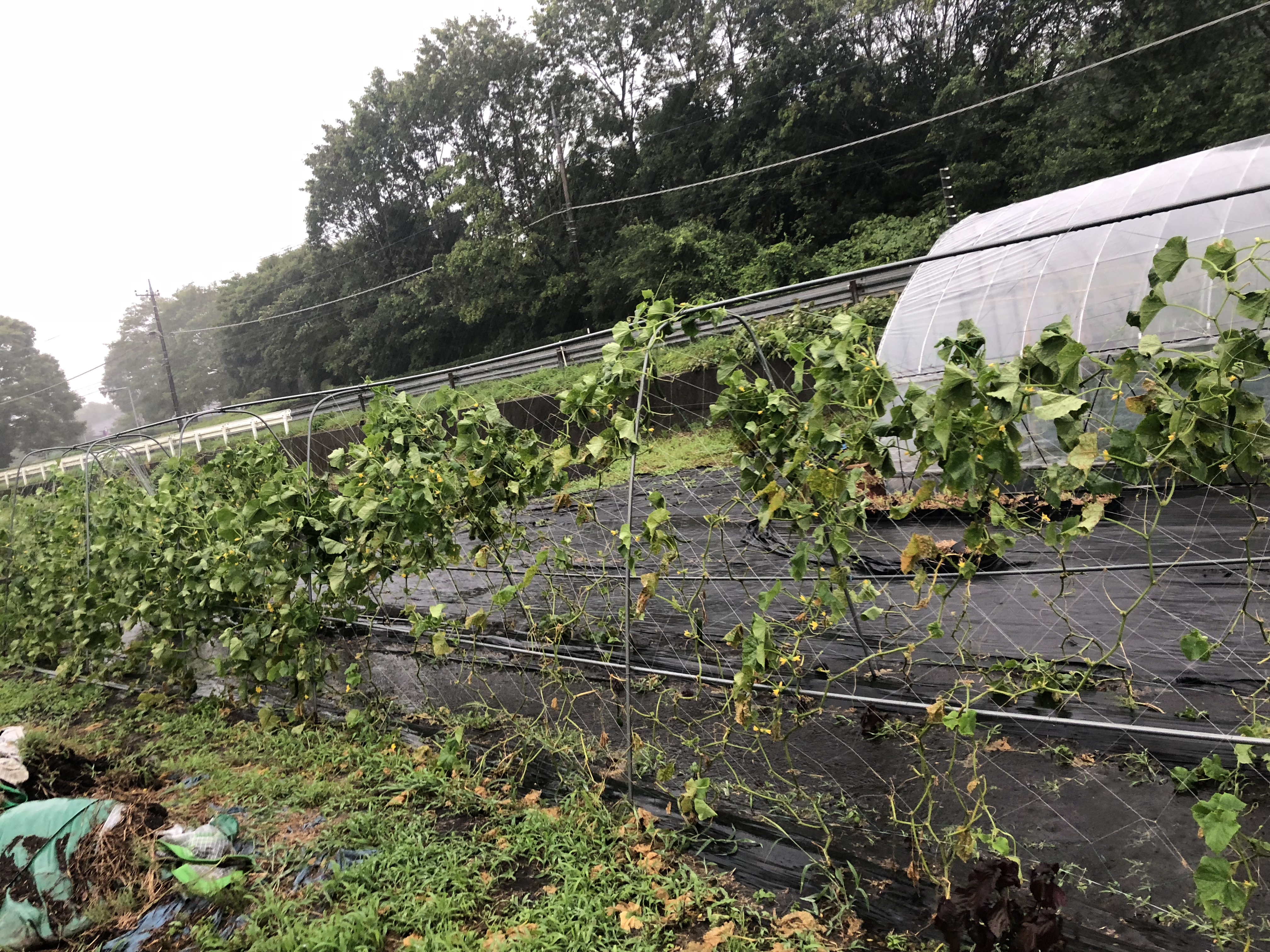ゴウゴウと、雨風にたたかれて、きゅうりが苦しそう・・・