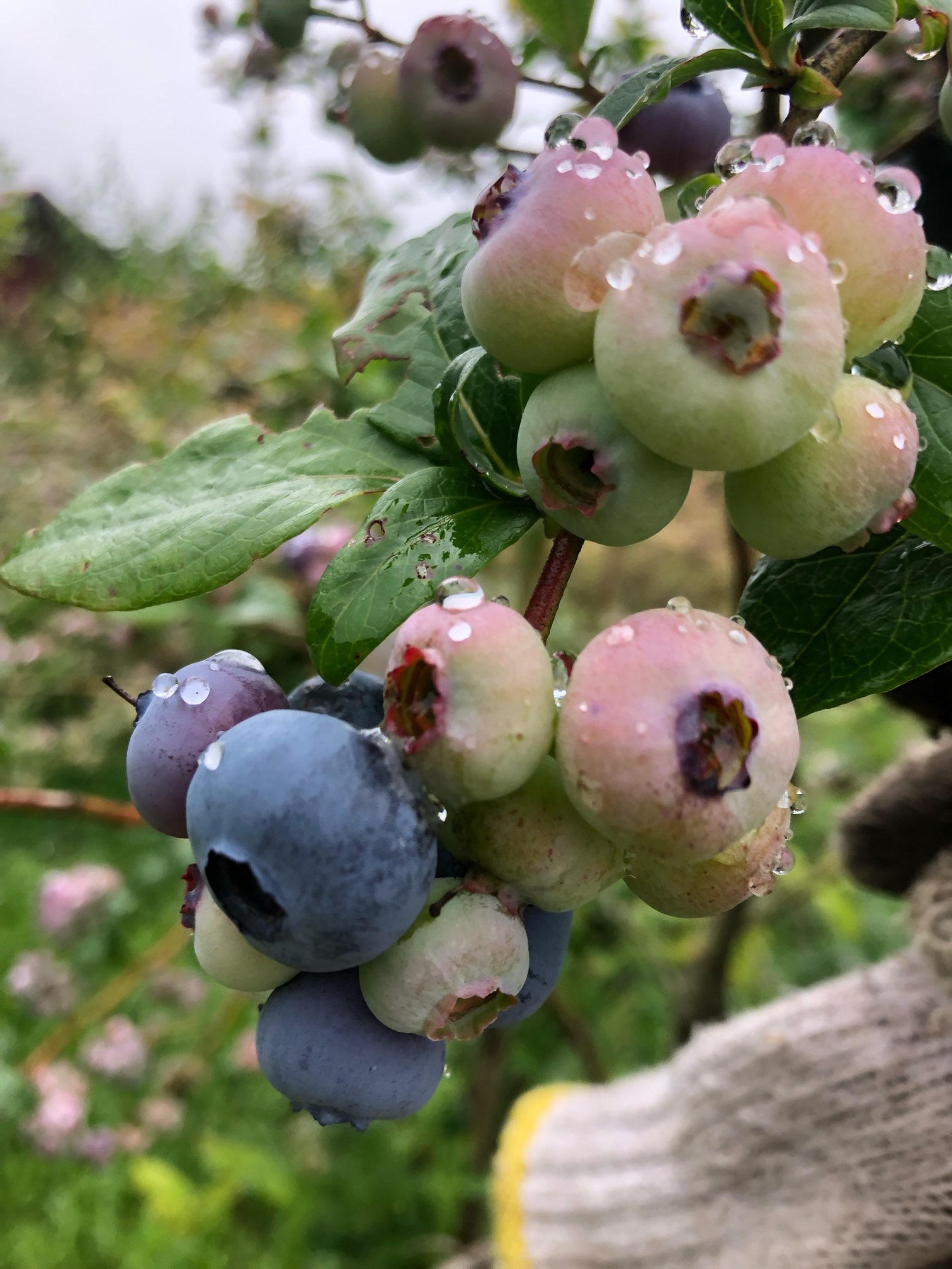 ブルーベリーが色づき始めており…