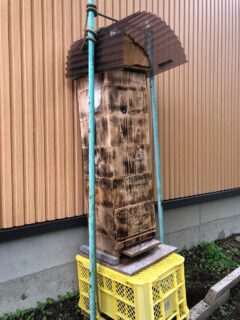 先月やってきてくれたニホンミツバチちゃん達の巣に