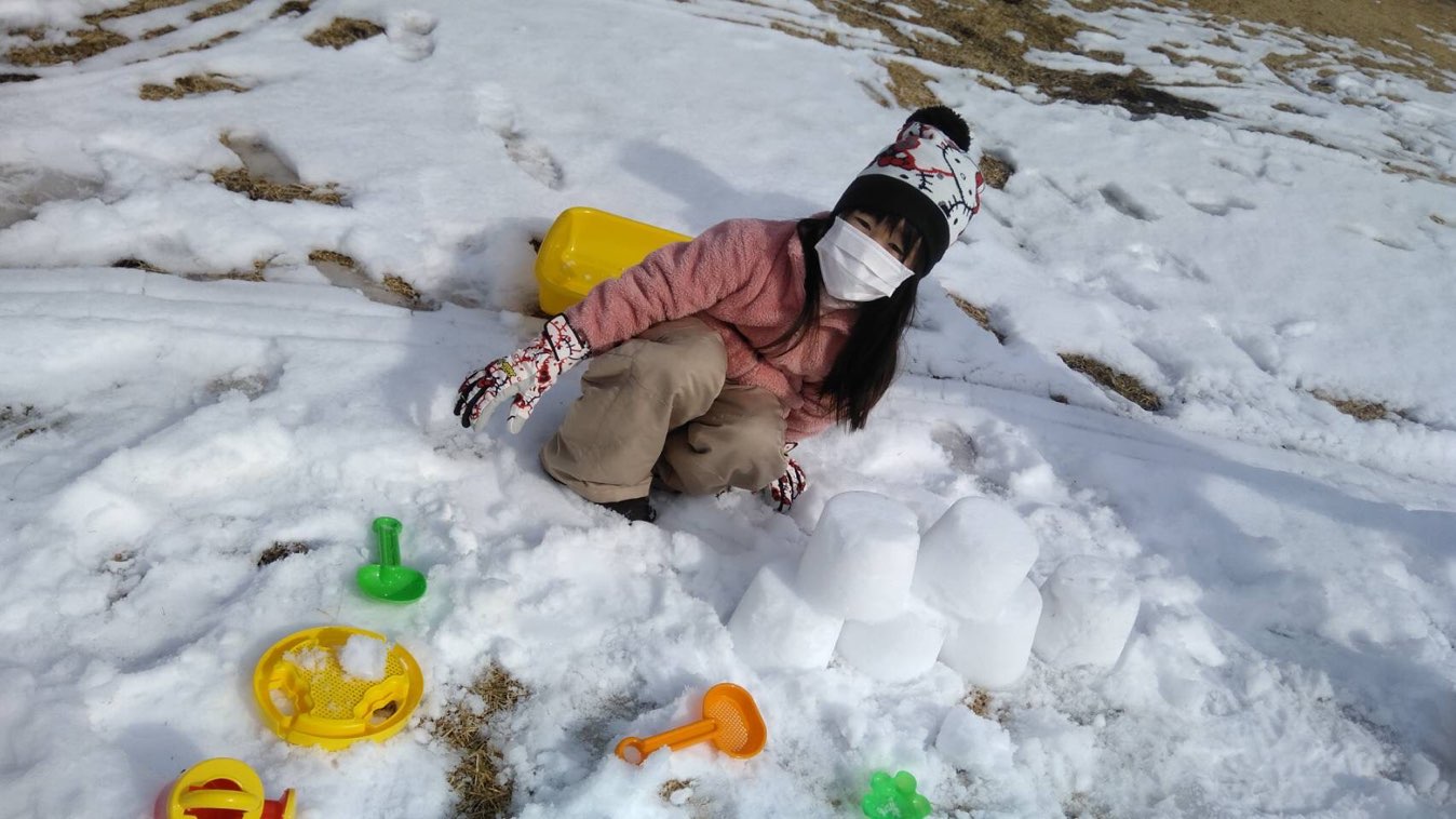 ●日が当たって、溶け始めている場所はどんどん水をかけて溶かしてもOK(流れた水が「どこへ行くか」だけ注意。日陰に流れ出して凍ったり、たまってビチャビチャはNG)