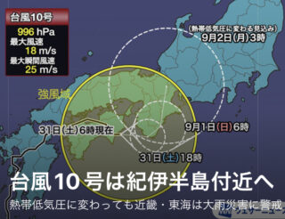 台風は、温泉に立ち寄ったり、日本の名所をゆっくり観光中。