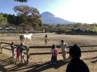 PremiumFarmcampの皆さんが、朝の動物餌やり後の馬の運動見学!