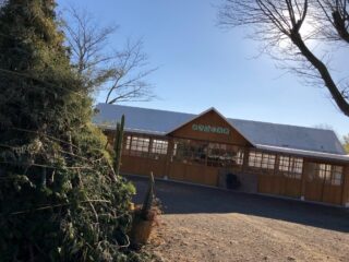 どんどの横には、屋根の建物「まきばの楽舎(がくしゃ)」。