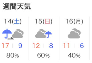 ※今天気予報観たら、日曜日の降水確率が60%まで下がってきています…(-_-;)