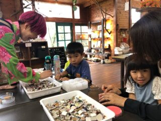 「いろんないろになる~❤」と、タイルを選んで埋め込みながら楽しそうに♬