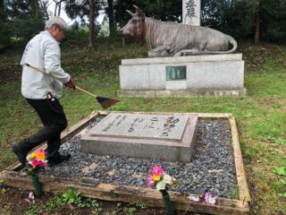慰霊碑のお参りは忘れない。動物のおかげでこのお仕事が出来ております。