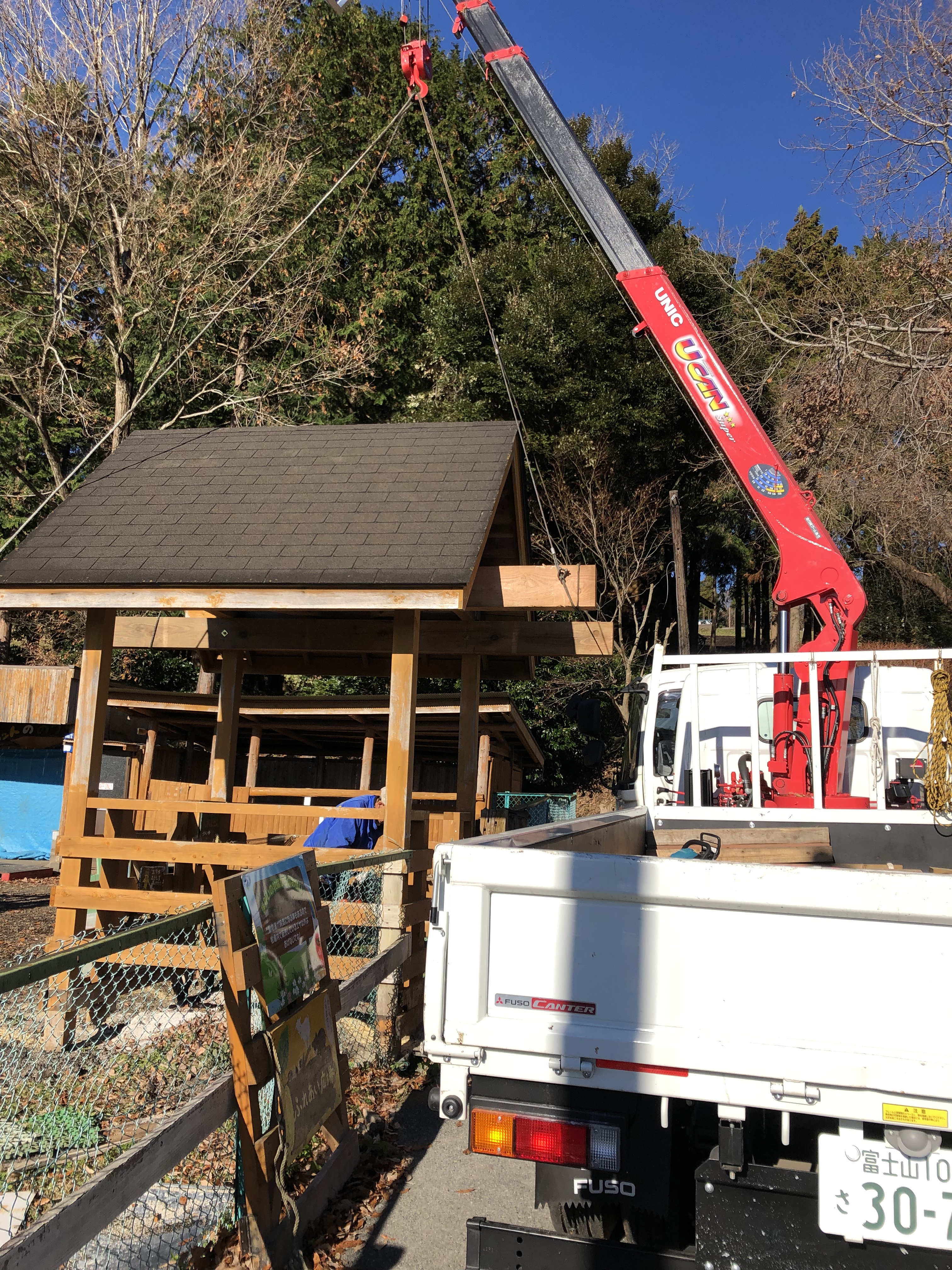 新たなふれあい場所の、モルモットとウサギの小屋、急ピッチ作成中!
