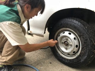 サイトウお姉さんが、空気を入れる機械「エアーコンプレッサー」の使用方法を覚えたいと。(👍!)