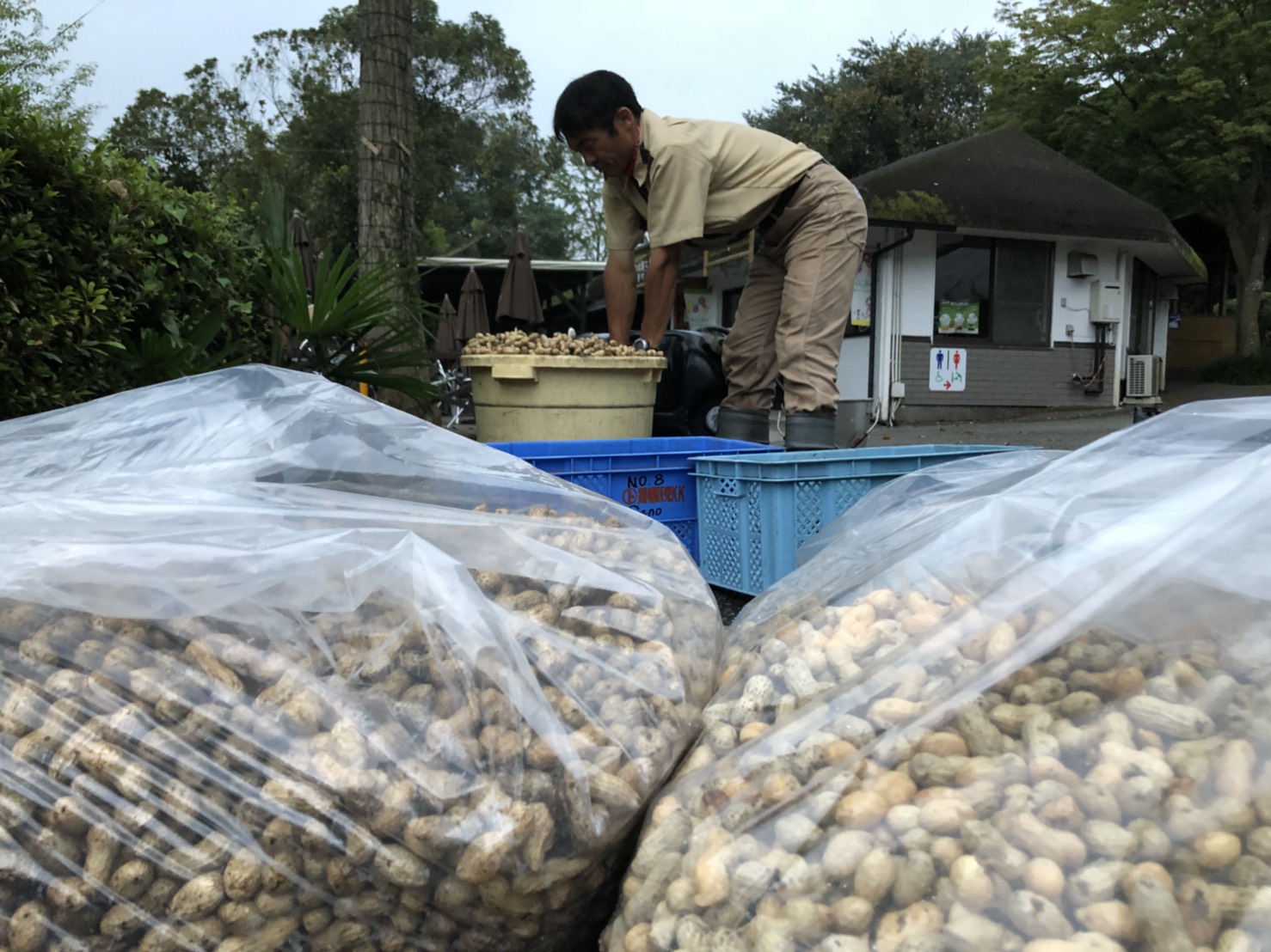 昨日79キロ、おととい67キロ、合計150キロ近くをゆで落花生にしております。