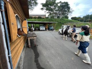 なぜか、チロル(右の馬)がバックで家に帰る所…
