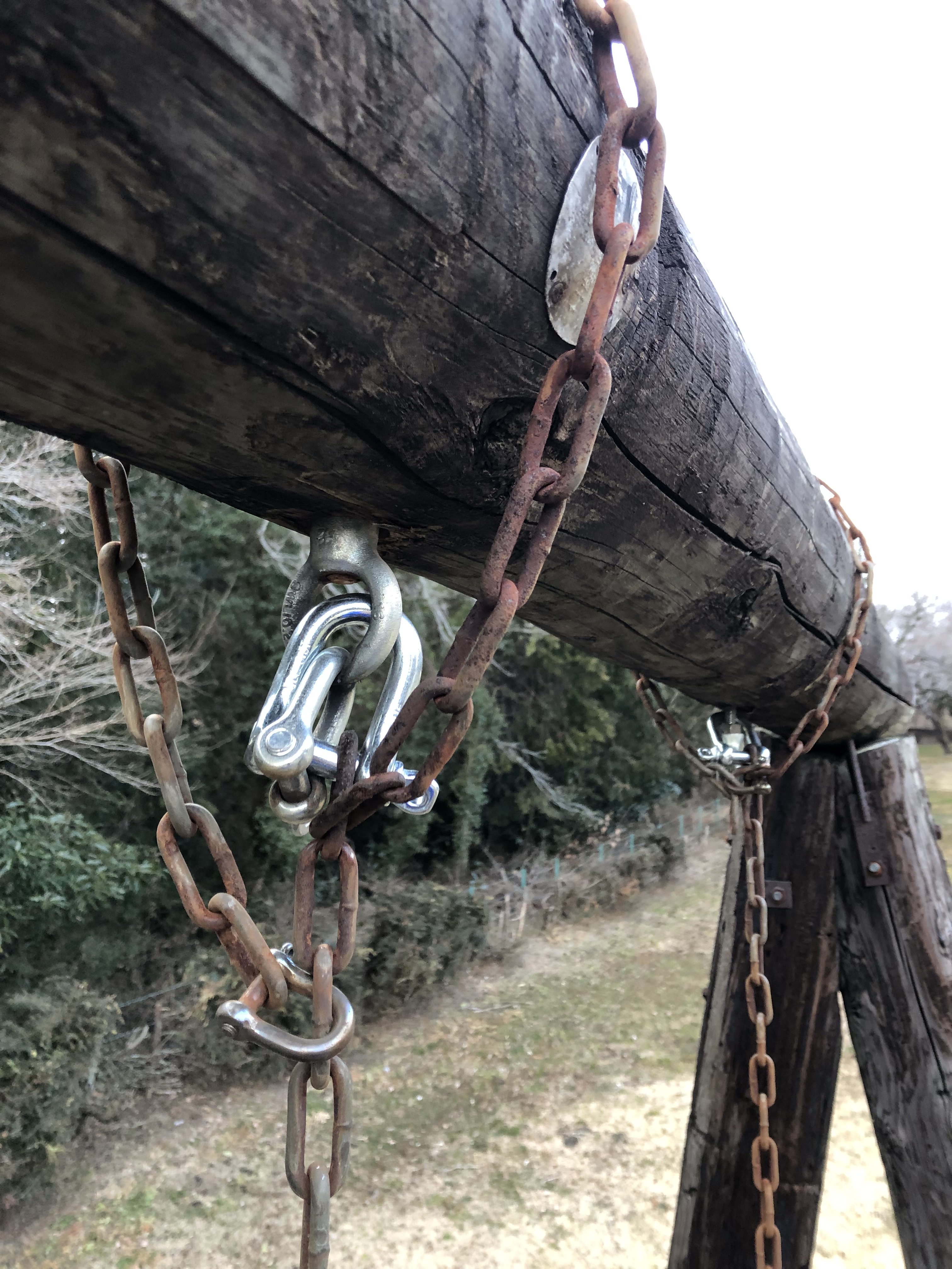 下のブランコは鎖を交換しましたが、山の上の方も整備。