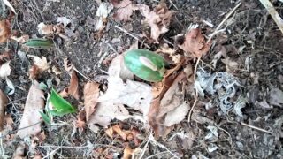 「庭にカタクリのつぼみをとうとう見つけたヨ!(1個だけ)」