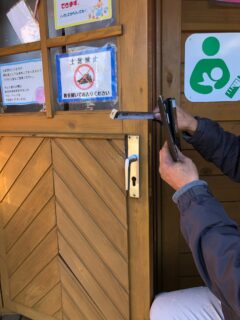 ドアノブは活かして、カギだけ別につける方法を実施。
