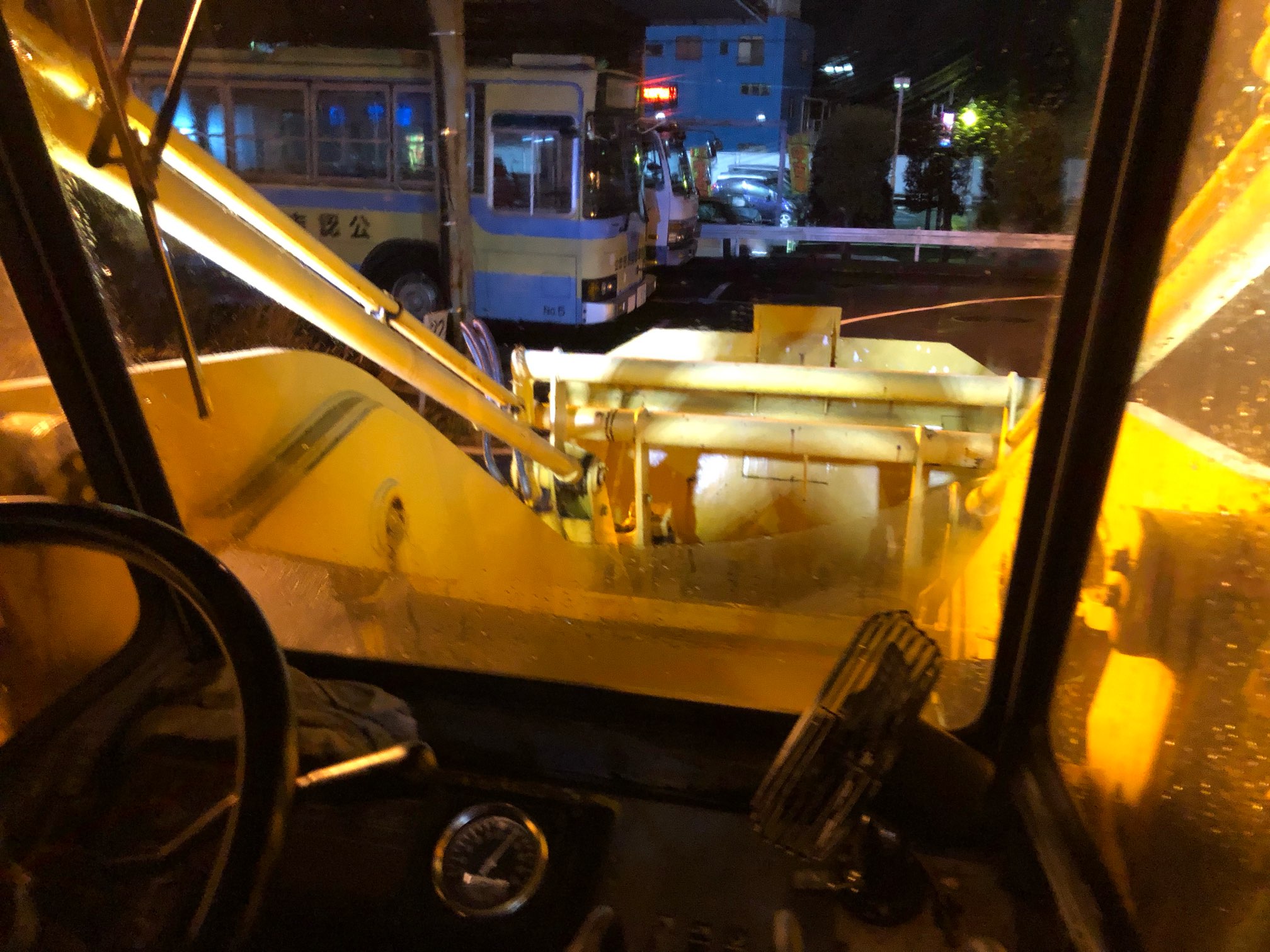 夜、自動車学校で「大型特殊」と「牽引免許」を取得中。