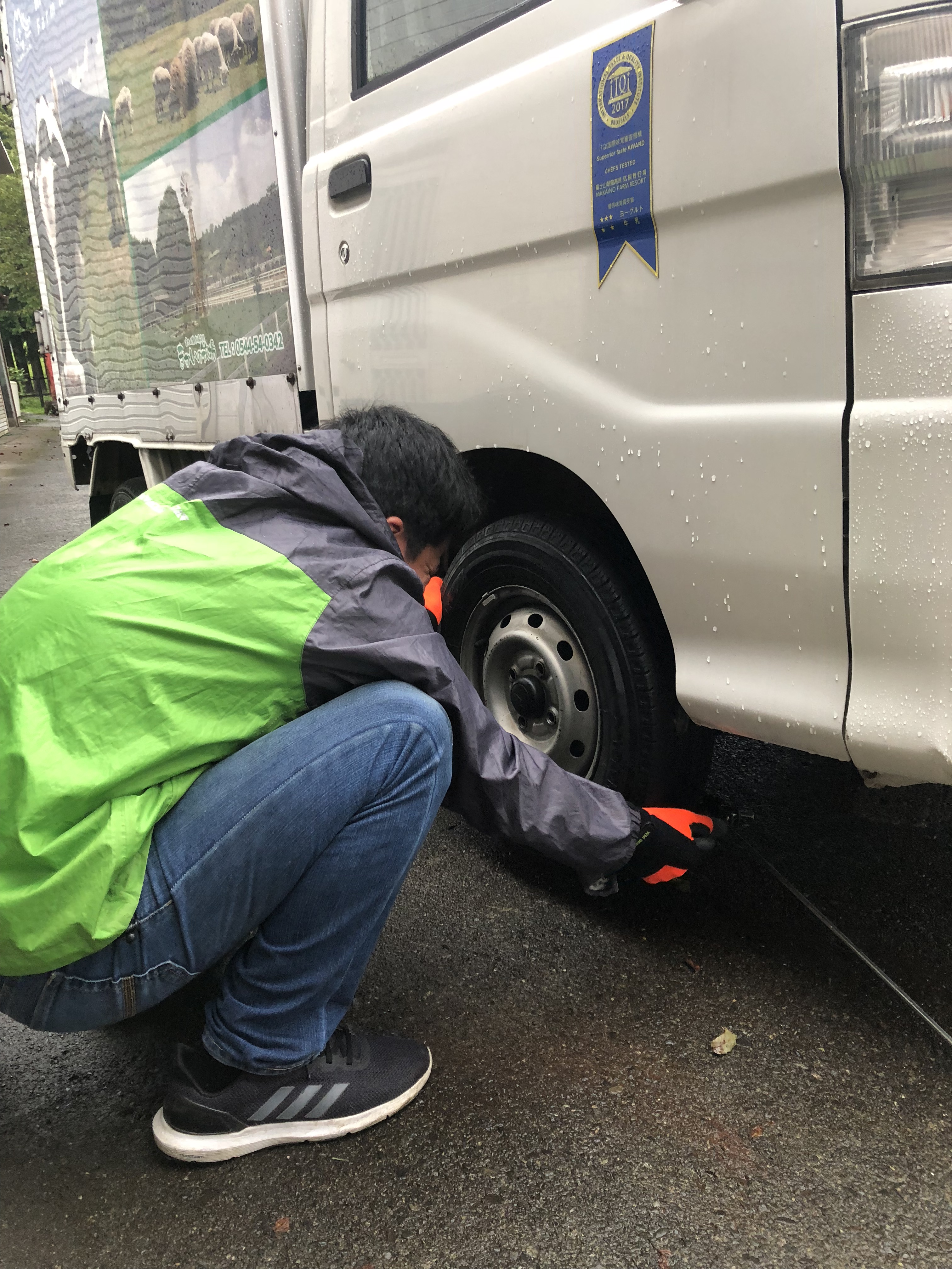 車のタイヤ交換、ちょうど立ち会えたので、色々教える。