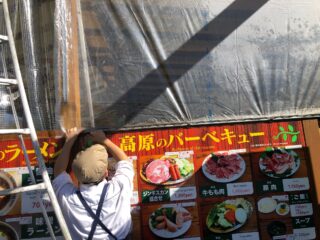 イッタお兄さんと、BBQテラスにビニールを張る作業を(教えながら)いっしょにやる。