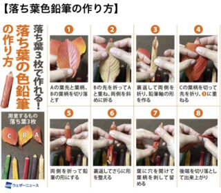 「落ち葉3枚で→【1本のカワイイ色鉛筆】が作れる」 byウェザーニュースさんw