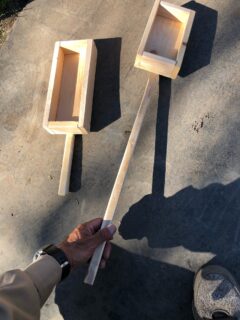 即座に「竹は(素材が)まだないけど、木材の端材があったから試作してみた(^^)」と即座に2つ持ってきてくれた。
