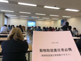 年に1回、必ず受けなければならない「動物取扱責任者講習」を富士市で受講。