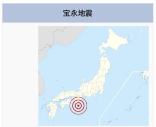 記録が残っている地震の中で最も大きかったのは、【宝永地震(1707年:マグニチュード9と推測)】でした。
