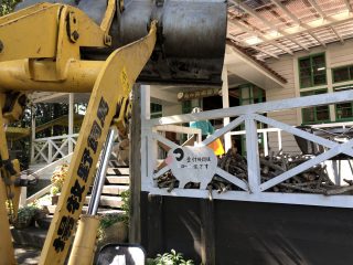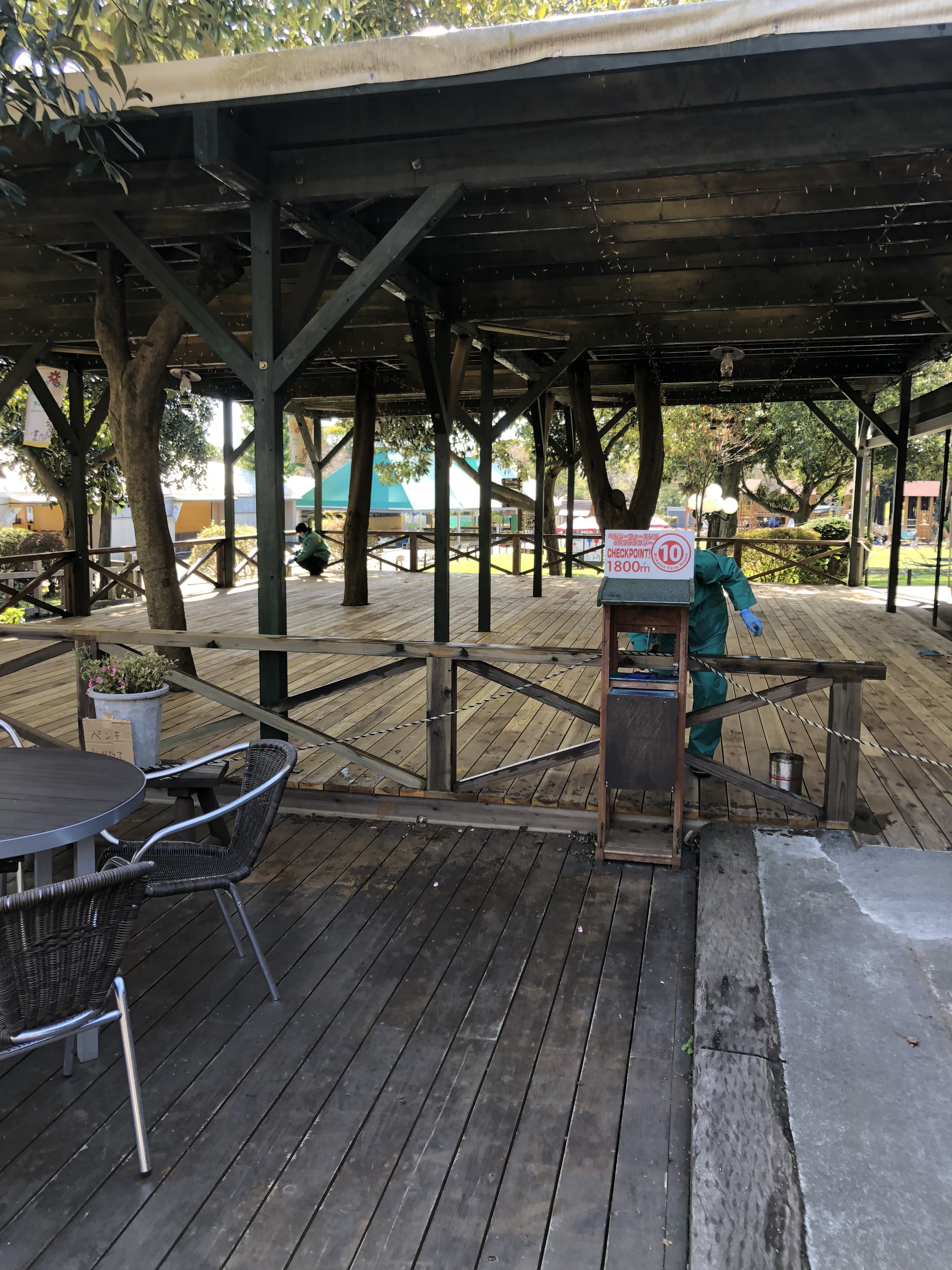 食の体験スタッフが、新テラスを頑張って塗り上げておりました!
