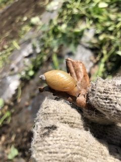 オカモノアラガイ、草むらにめっちゃいる場所も何カ所かあります‥(道路清掃時に発見)