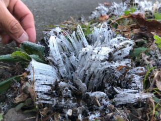 夜の間に、空気中の水分が結露しながら凍り付き