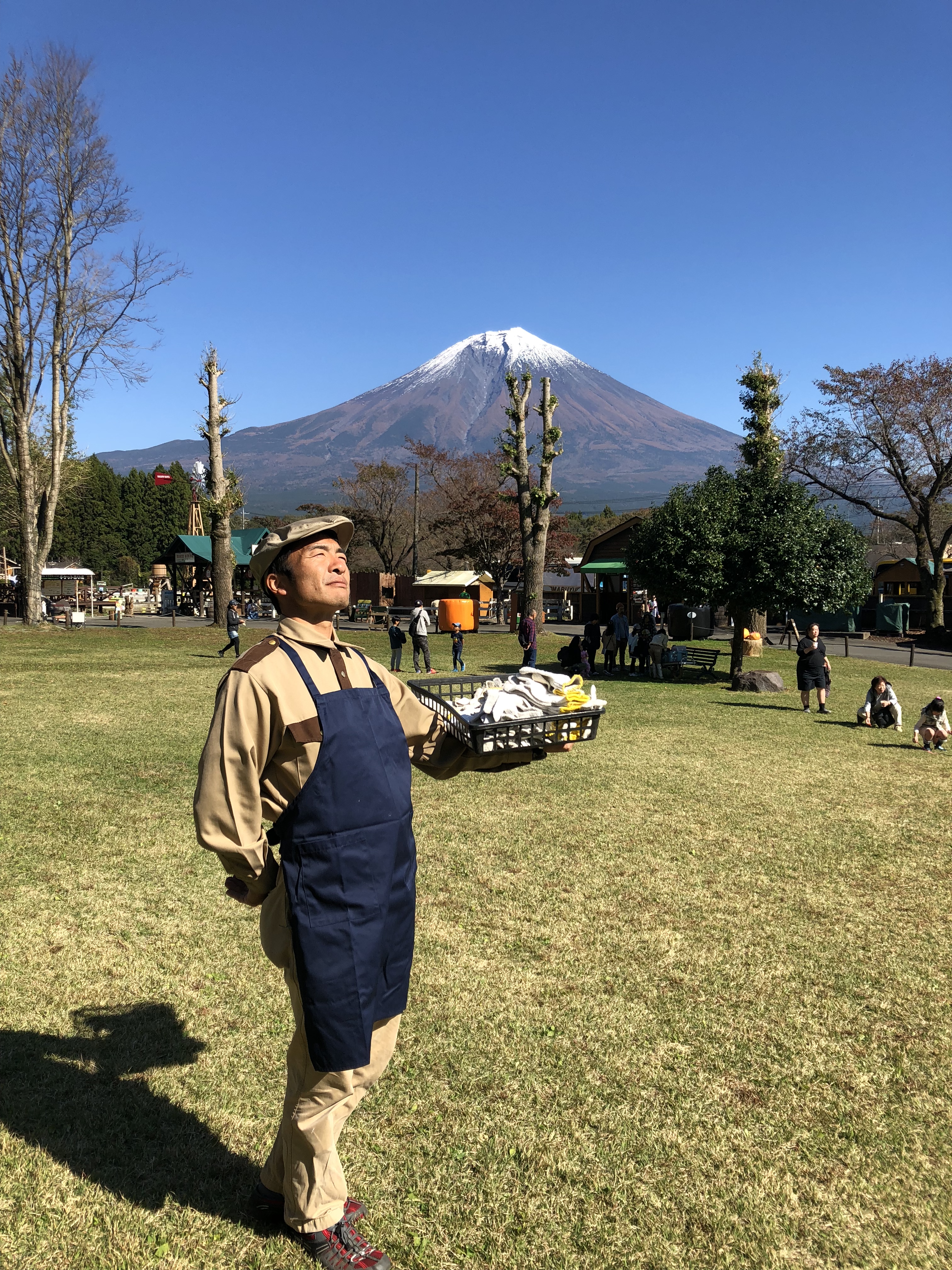 収穫の時間に、食の体験のヘルプが必要だったのでこんな格好。