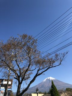 写真中央、駐車場の桜の枝、3メートルくらいの枝がバッキリ折れてぶら下がっていた。