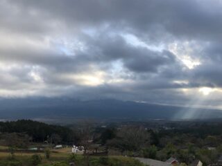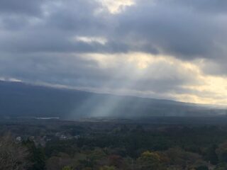 富士山が雲で隠れていた。右端には天使の階段。