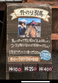 乗馬コーナー前にこの看板が出ておりまして、当日予約制。