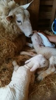 そのちょうど1時間後、お客様が見守る中、難産ではあったものの2頭のメスの子羊が誕生しました!