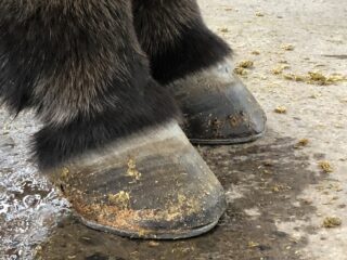 野生の状態は、人が絶対に乗らないので「蹄が伸びるにつれて削れる状態」です。
