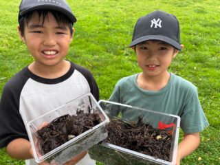 クワガタなどをゲットしたかったハルヒサ君(左)とチハヤ君(右)。