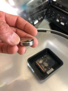 開けてみて、こんなに分厚くて大きなボタン電池が出てきてびっくり。