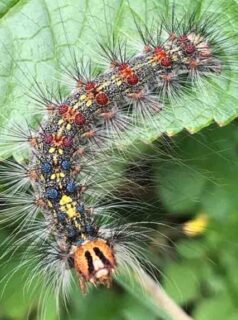 マイマイガの幼虫。目がついているみたいな模様。