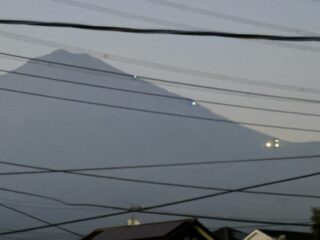 富士山に、点々と明るい光。