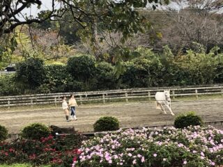 馬の運動を一緒に行っていました。