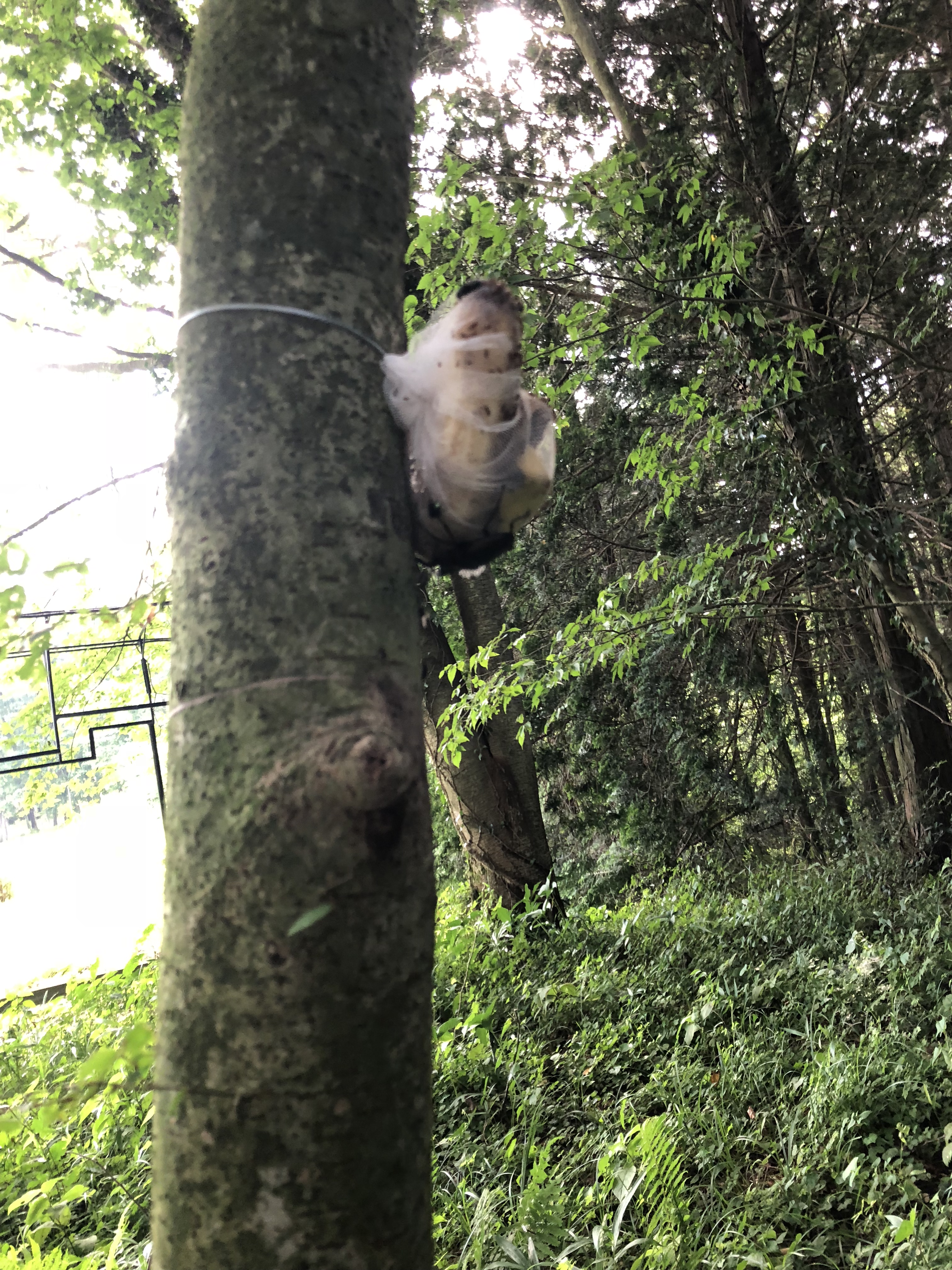 仕掛けたバナナトラップ、早朝トウモロコシに来てくださった方と見に行ってみる。