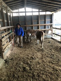 子牛が来るのでミルクやりの催しの所(ふれあい学習館うしろ)の部屋を開けるために大きくなってきた子牛を「育成牛」の場所へ移動させる朝6時過ぎ。