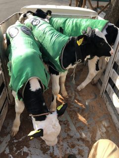 早朝子牛を運ぶ。