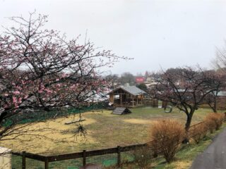 ドッグフィールド横の、少し早く咲くサクラが咲き始めました。