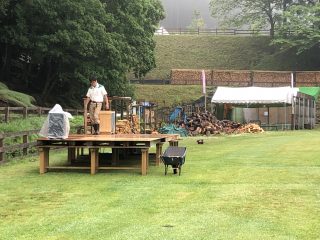 旧ワラビー小屋前のウッドチップの山。
