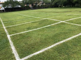 薄明るくなるころから駐車場のライン引きを頑張ったのは馬飼野社長。
