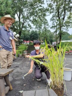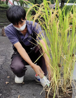 雑草を抜いたり、水の量を調節したり、スズメに食べられないようにネットをかけたり‥