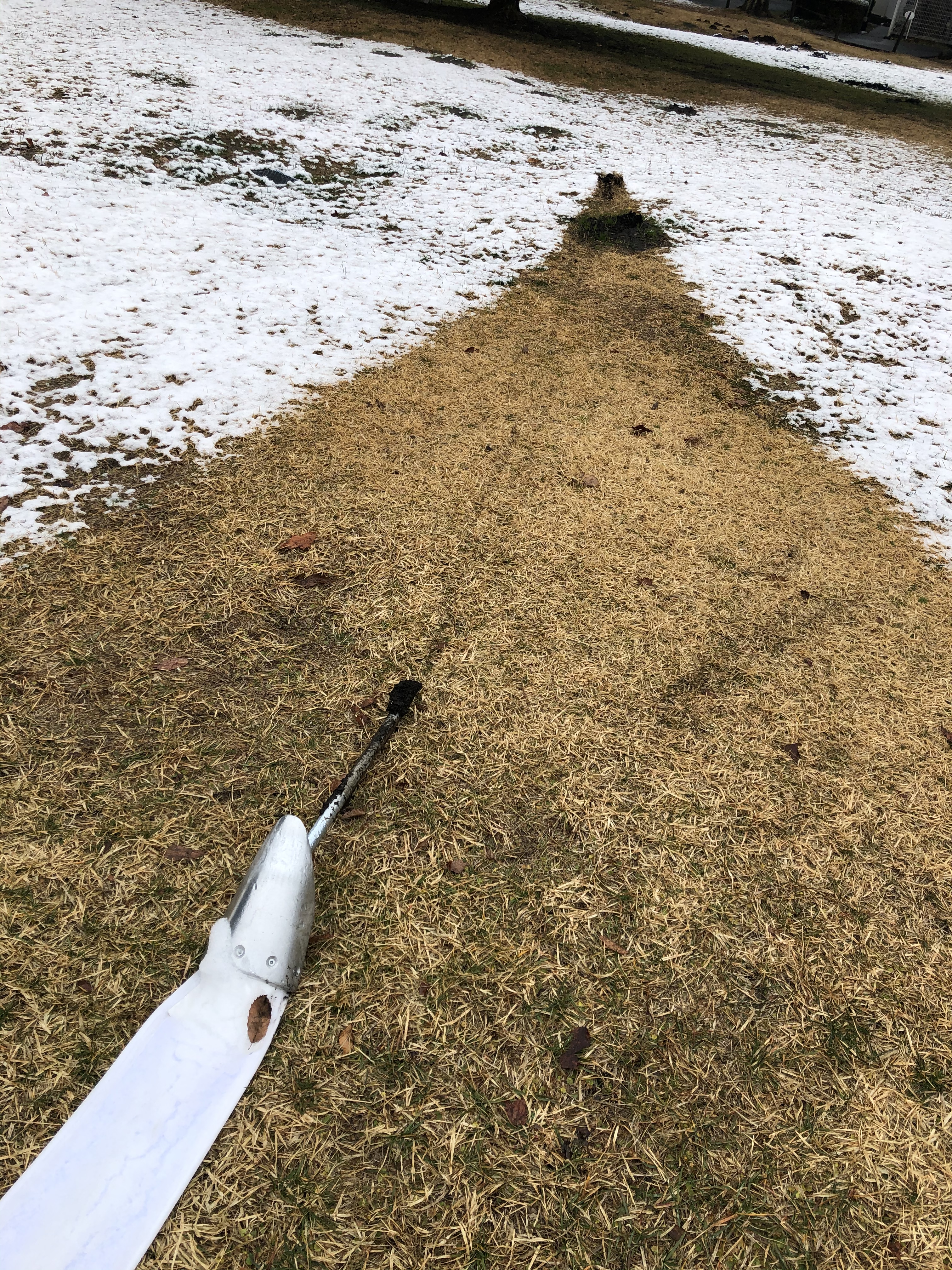 ベチャ雪の重さで60センチのクイが抜けちゃった。