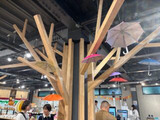 売店で、木に小さいカサを吊るしているのを見かけた。