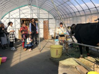 そんな中でも乳しぼり体験開催中。